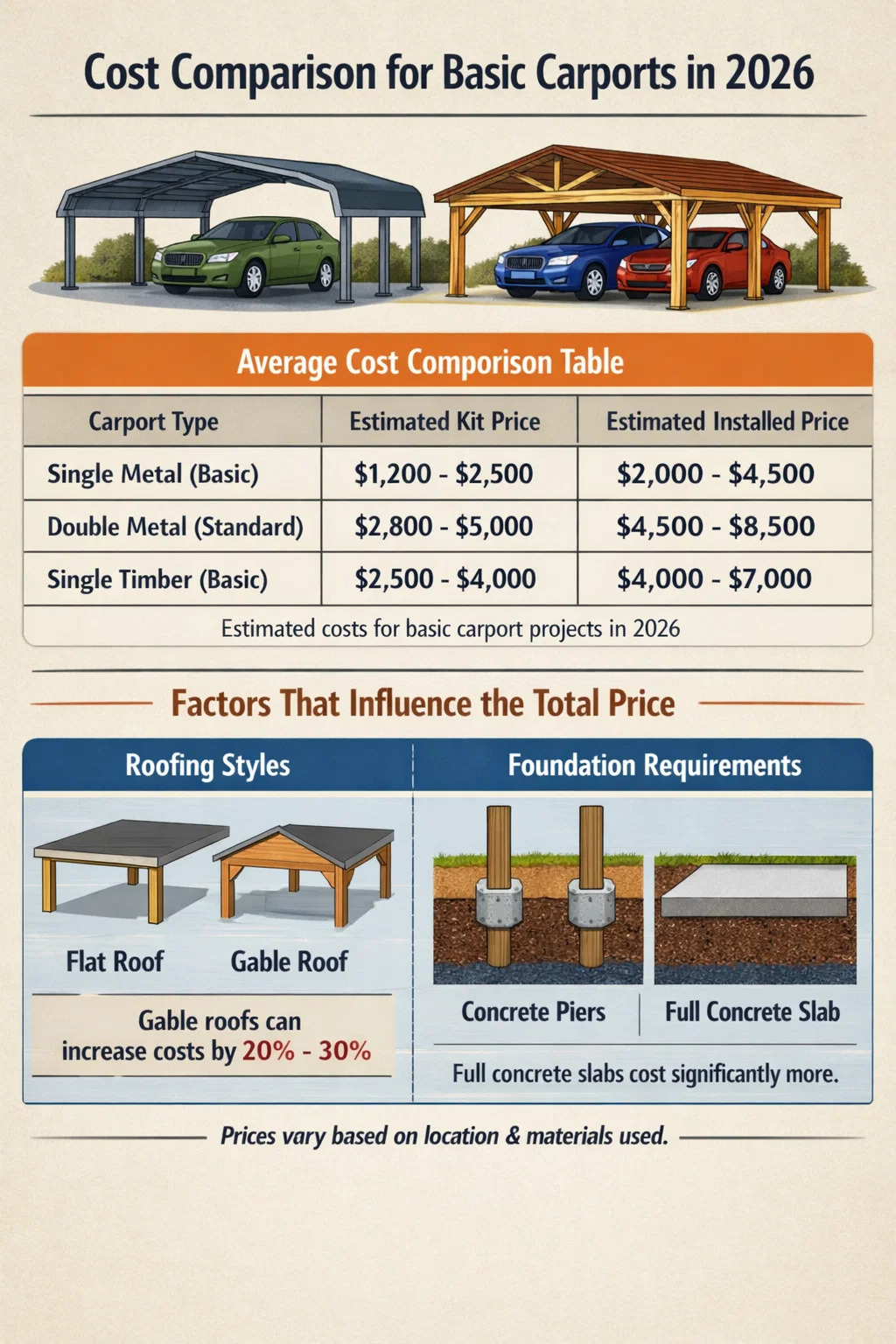 | Carport Type | Estimated Kit Price | Estimated Installed Price |